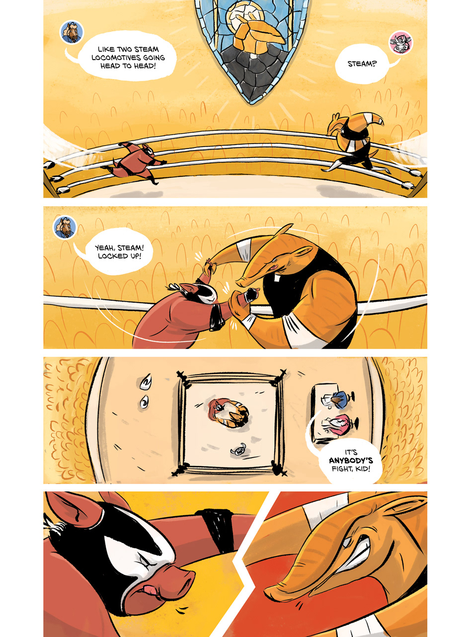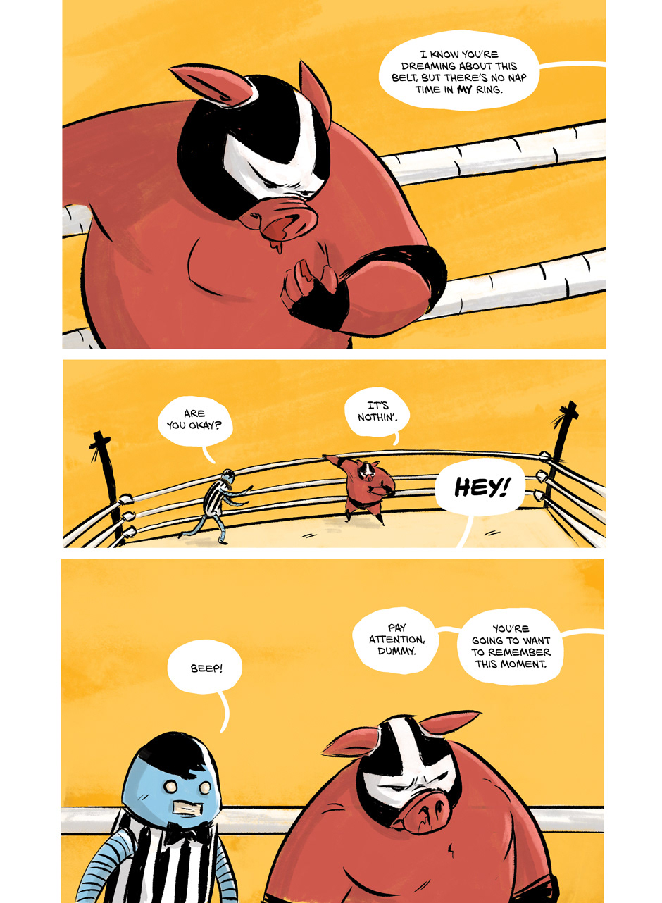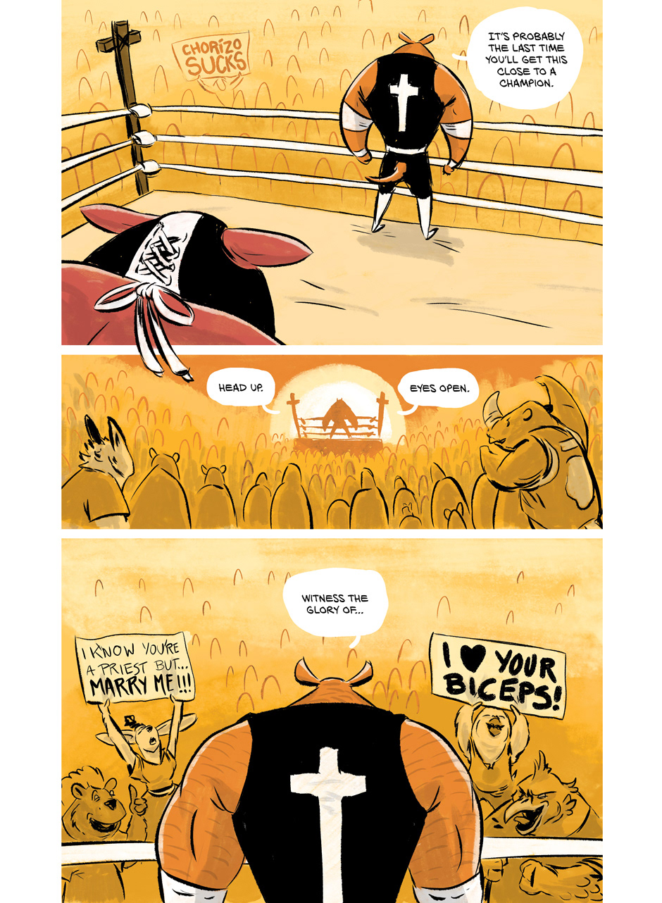 Issue 01 of the Chorizo universe. 24 pages of fighting. "This story starts this story off in Muscle Church, where you work out your muscles and whatever guilt you got locked up between your butt cheeks. Located in the La Correa neighborhood, Muscle Church is home to Arma de Dios, the resident Ring Leader and shit talker. Will the little luchaboar have what it takes to move on to Fight Fest, the annual tournament of champions, or will the "Dillo Daddy" have him praying he didn't step into the ring?"